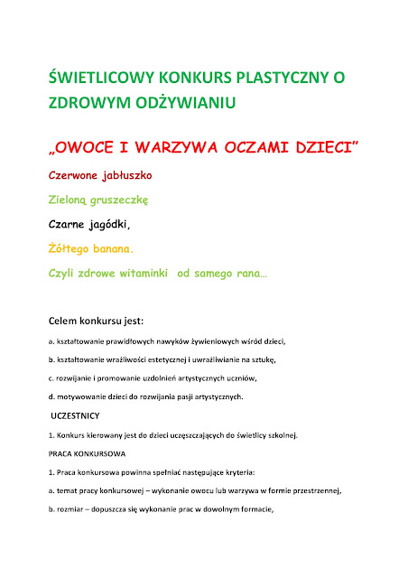 Świetlicowy konkurs plastyczny o zdrowym odżywianiu